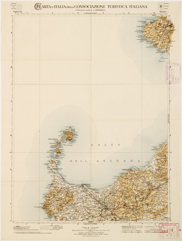 CARTA D'ITALIA DEL TOURING CLUB ITALIANO PUBBLICAZIONE DIRETTA DA L.V. BERTARELLI - Foglio 32 - Sassari.
