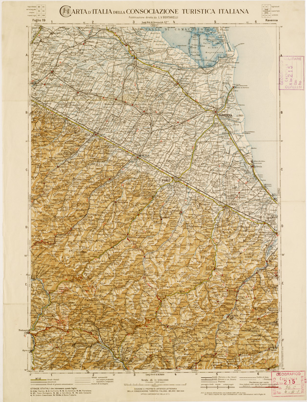 CARTA D'ITALIA DEL TOURING CLUB ITALIANO PUBBICAZIONE DIRETTA DA L.V. BERTARELLI - Foglio 19 - Ravenna.