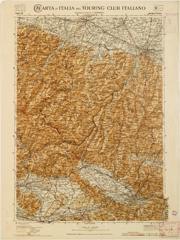 CARTA D'ITALIA DEL TOURING CLUB ITALIANO PUBBLICAZIONE DIRETTA DA L.V. BERTARELLI - Foglio 18 - Bologna - Firenze.