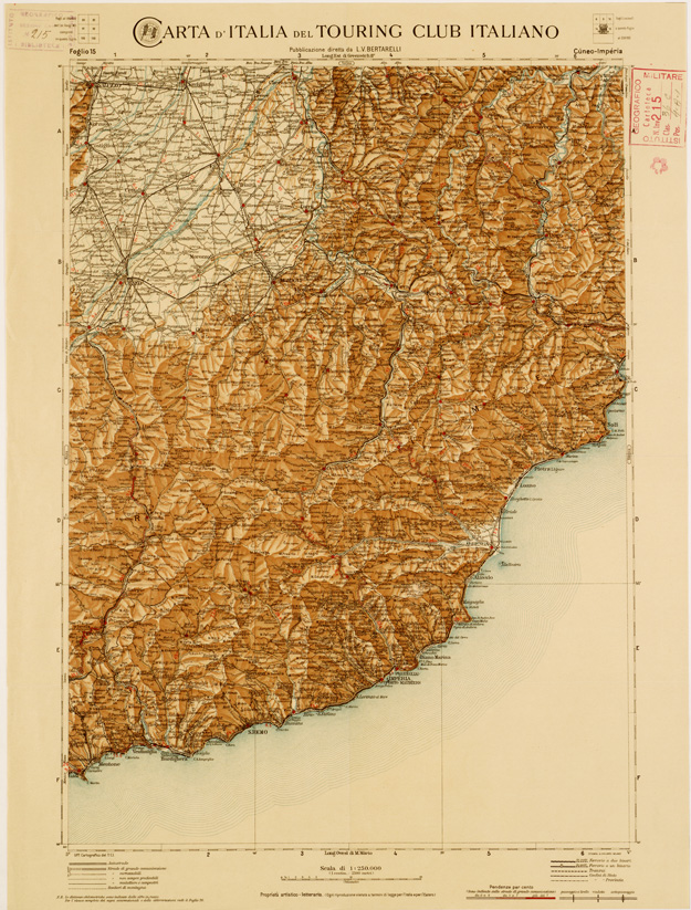 CARTA D'ITALIA DEL TOURING CLUB ITALIANO PUBBLICAZIONE DIRETTA DA L.V. BERTARELLI - Foglio 15 - Cuneo - Imperia.