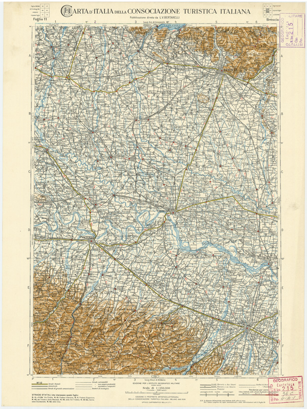 CARTA D'ITALIA DEL TOURING CLUB ITALIANO PUBBLICAZIONE DIRETTA DA L.V. BERTARELLI - Foglio 11 - Brescia.