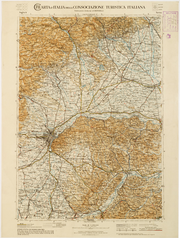CARTA D'ITALIA DEL TOURING CLUB ITALIANO PUBBLICAZIONE DIRETTA DA L.V. BERTARELLI - Foglio 9 - Torino.