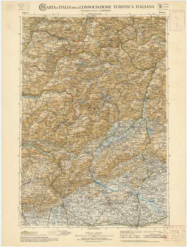 CARTA D'ITALIA DEL TOURING CLUB ITALIANO PUBBLICAZIONE DIRETTA DA L.V. BERTARELLI - Foglio 6 - Belluno.