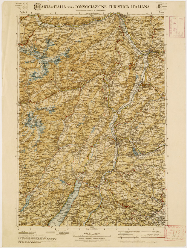 CARTA D'ITALIA DEL TOURING CLUB ITALIANO PUBBLICAZIONE DIRETTA DA L.V. BERTARELLI - Foglio 5 - Trento.