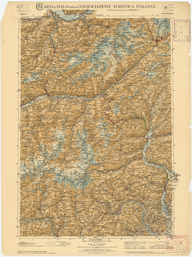 CARTA D'ITALIA DEL TOURING CLUB ITALIANO PUBBLICAZIONE DIRETTA DA L.V. BERTARELLI - Foglio 2 - Domodossola.