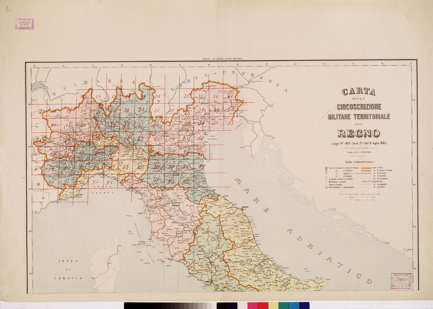 CARTA DELLA CIRCOSCRIZIONE MILITARE TERRITORIALE DEL REGNO (LEGGE 1883) - Foglio 1