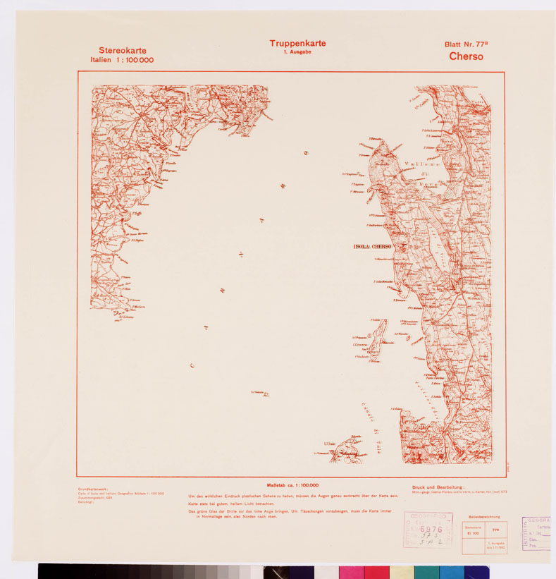 TRUPPENKARTE - STEREOKARTE - (CARTA STEREOSCOPICA PER USO MILITARE) - Foglio 77B - Cherso