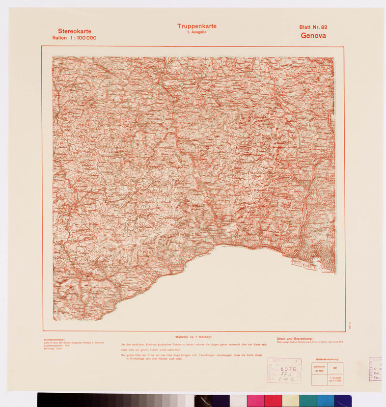 TRUPPENKARTE - STEREOKARTE - (CARTA STEREOSCOPICA PER USO MILITARE) - Foglio 82 - Genova
