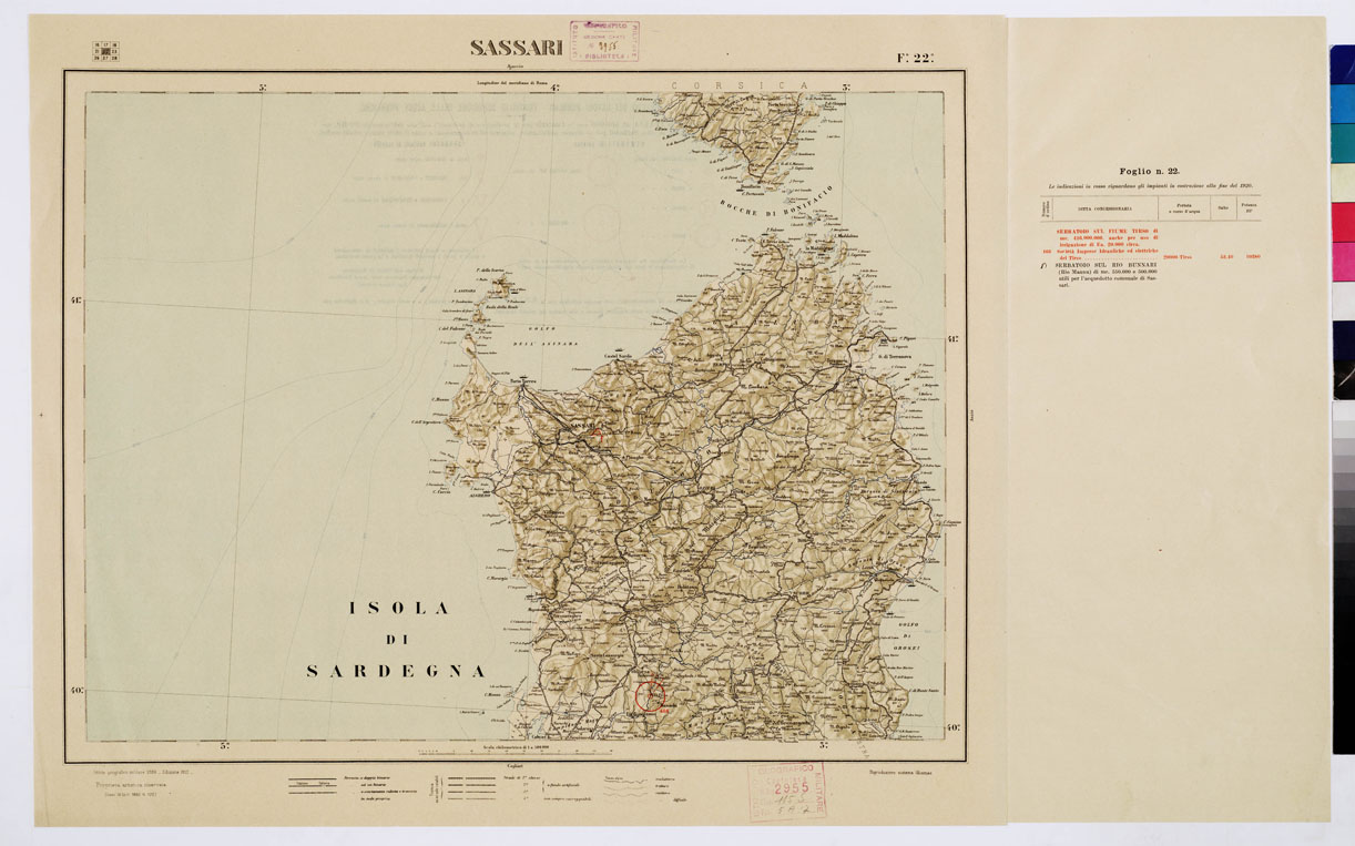CARTA D'ITALIA CON LE INDICAZIONI DELLE CENTRALI PER LA PRODUZIONE DI ENERGIA ELETTRICA, ESISTENTI ED IN COSTRUZIONE A TUTTO L´ANNO 1920 - Foglio 22 SASSARI