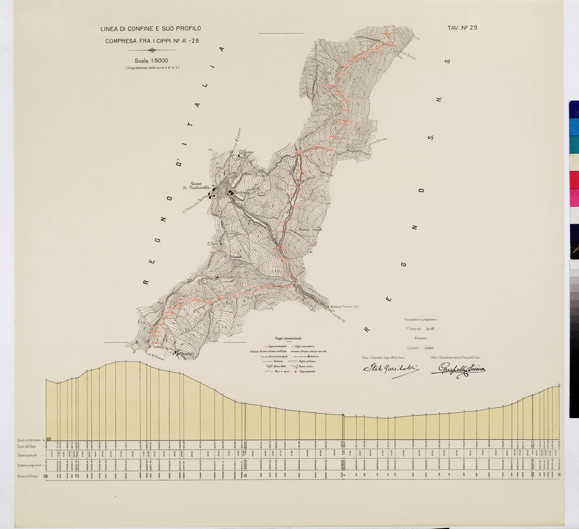 COMMISSIONE ITALO - S.H.S. PER LA DELIMITAZIONE E I CONFINI FRA IL REGNO D´ITALIA E IL REGNO S.H.S. RILIEVO DI CONFINE E SUO PROFILO - Tavola 29