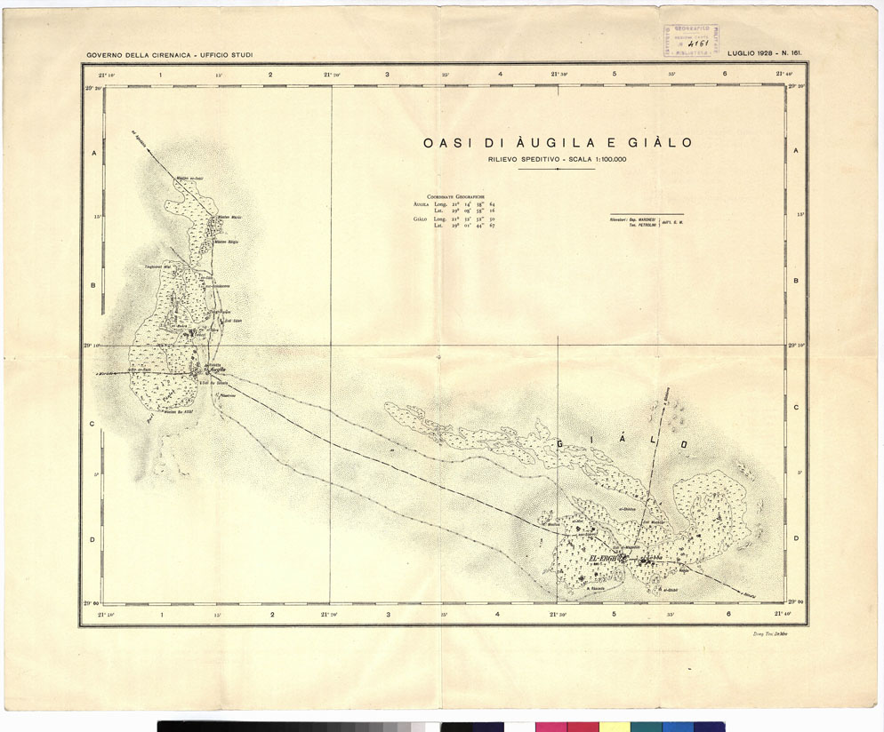 CARTA DELLA CIRENAICA - OASI DI AUGILA E GIALO - LUGLIO 1928 N. 161