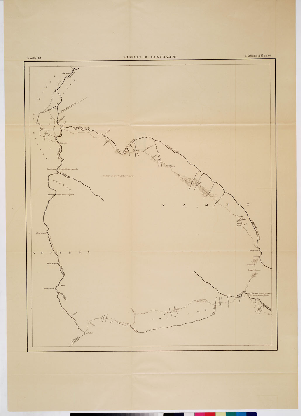 MISSION DE BONCHAMPS DE DJIBOUTI AU NIL BLANC D'APRES LES TRAVAUX DE M.RS L. BARTHOLIN, CH. MICHEL, FAIVRE ET M. POTTER. CARTE D'ENSEMBLE PAR CH. MICHEL SECOND DE LA MISSION 1897 - 1898 DESSIN DE J. HANSEN - Foglio 13 - D'Obotte a Oupao