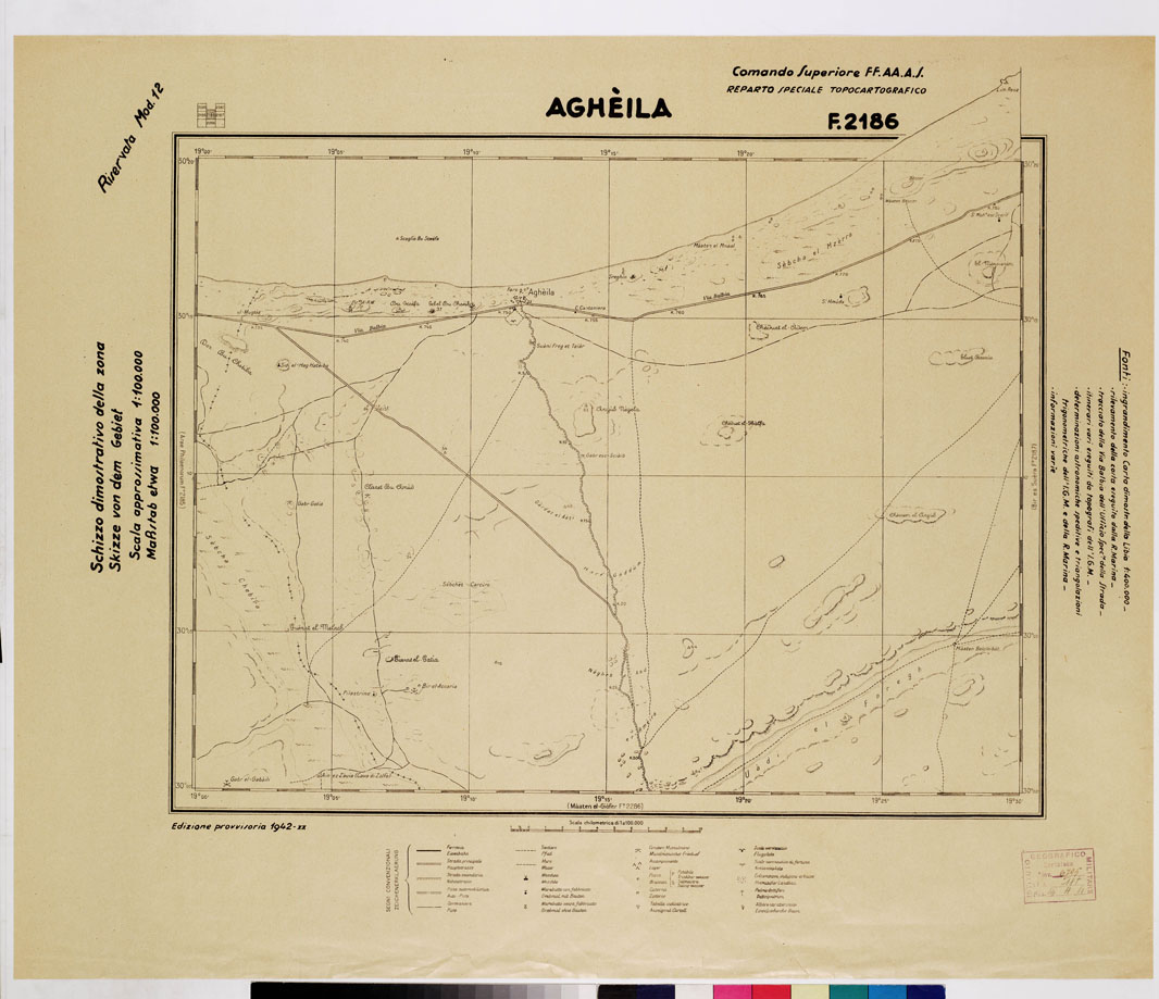 CARTA DELLA CIRENAICA :SUD DEL BENGASI - SIRTICA - CIRENAICA CENTRO ORIENTALE - AGHEILA F 2186