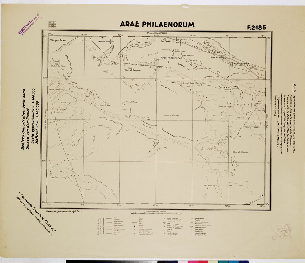 CARTA DELLA CIRENAICA :SUD DEL BENGASI - SIRTICA - CIRENAICA CENTRO ORIENTALE - ARAE PHILAENORUM F 2185