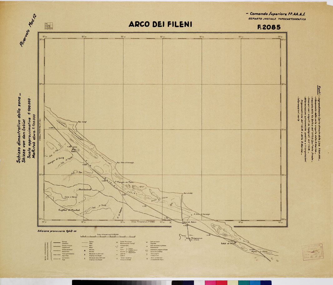 CARTA DELLA CIRENAICA :SUD DEL BENGASI - SIRTICA - CIRENAICA CENTRO ORIENTALE - ARCO DEI FILENI F 2085