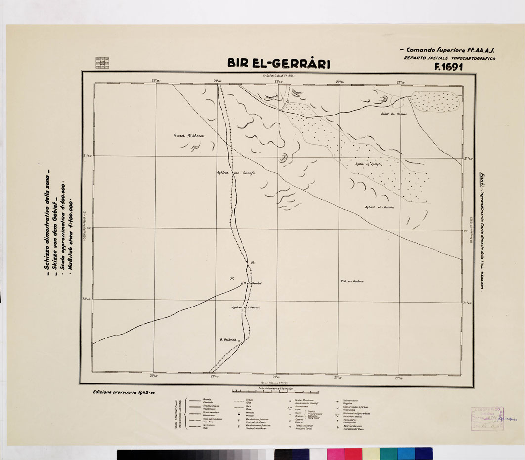 CARTA DELLA CIRENAICA :SUD DEL BENGASI - SIRTICA - CIRENAICA CENTRO ORIENTALE - BIR EL-GERRARI F 1691
