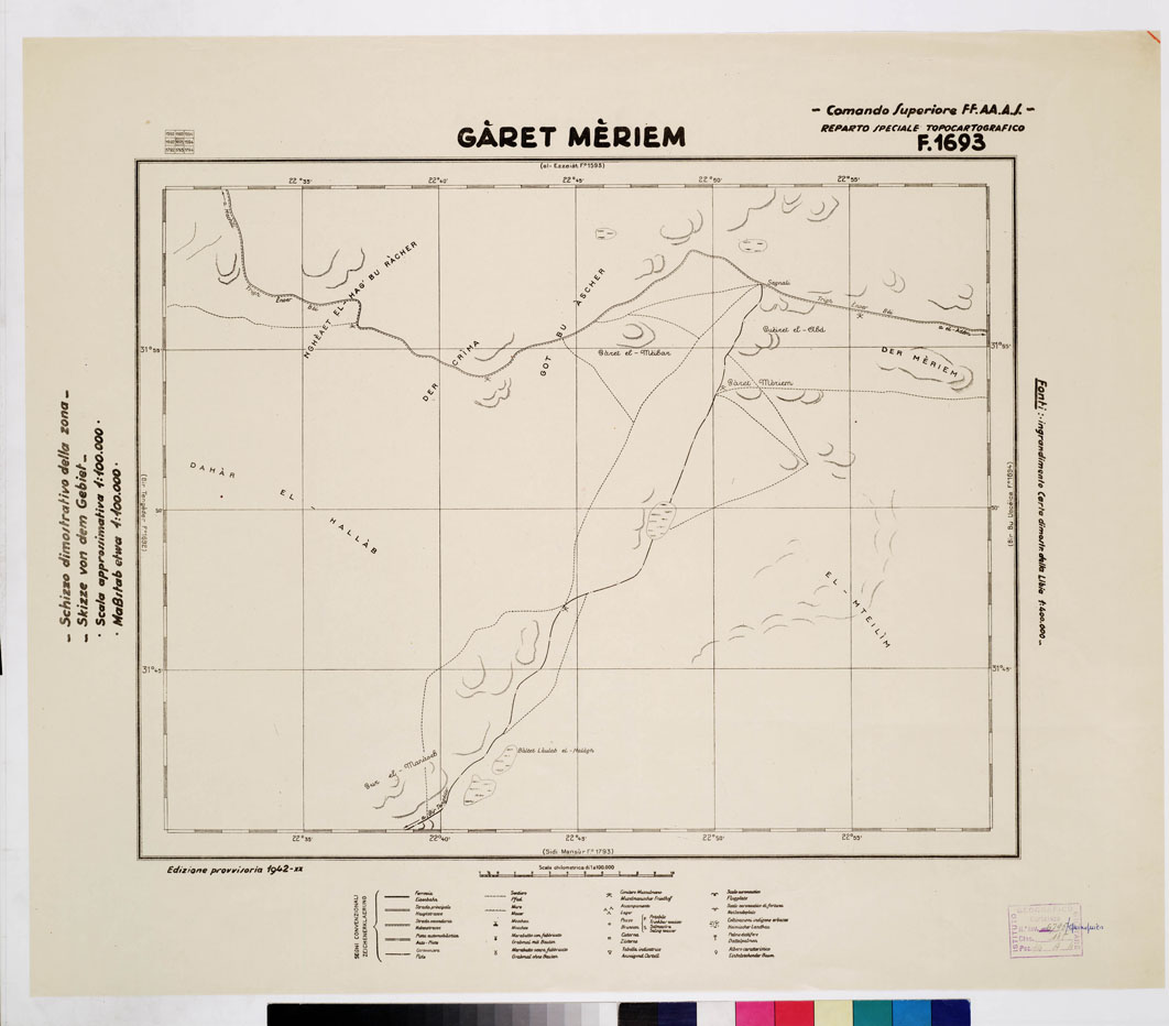 CARTA DELLA CIRENAICA :SUD DEL BENGASI - SIRTICA - CIRENAICA CENTRO ORIENTALE - GARET MERIEM F 1693