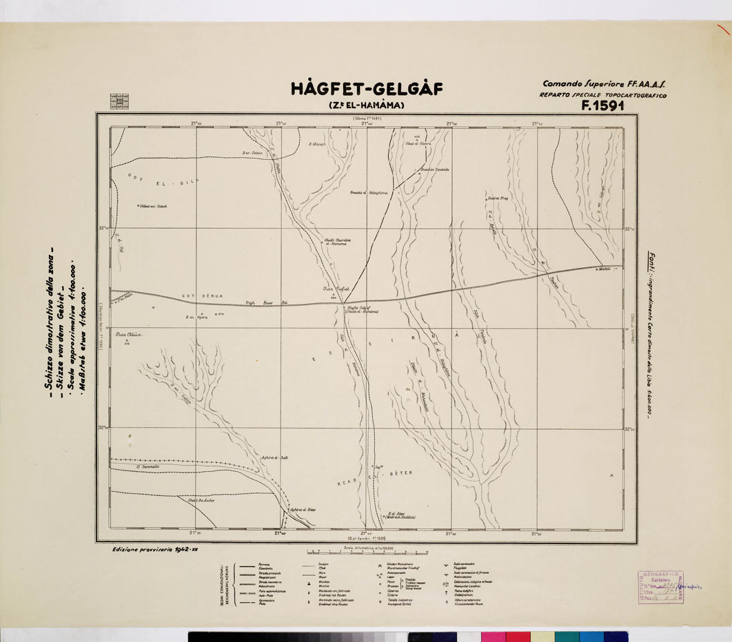 CARTA DELLA CIRENAICA :SUD DEL BENGASI - SIRTICA - CIRENAICA CENTRO ORIENTALE - HAGFET-GELGAF F 1591