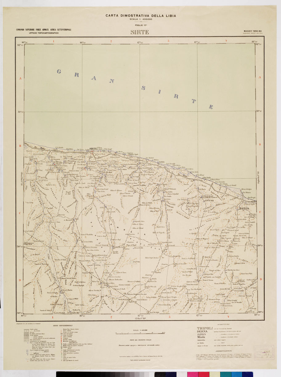 CARTA DIMOSTRATIVA DELLA LIBIA - Foglio 10 SIRTE MARZO 1934 XII