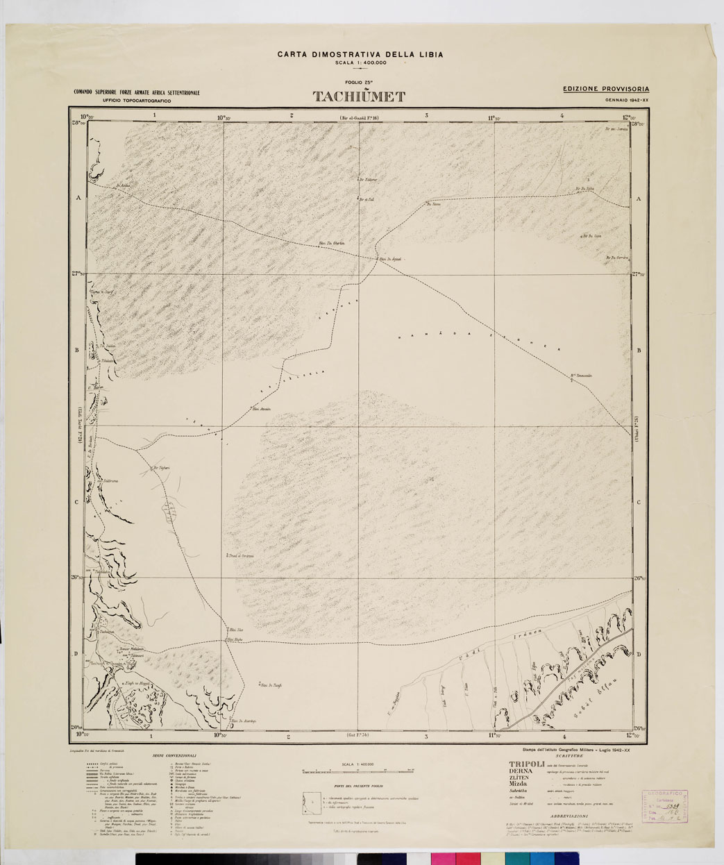CARTA DIMOSTRATIVA DELLA LIBIA - Foglio 25 TACHIUMET GENNAIO 1942 XX
