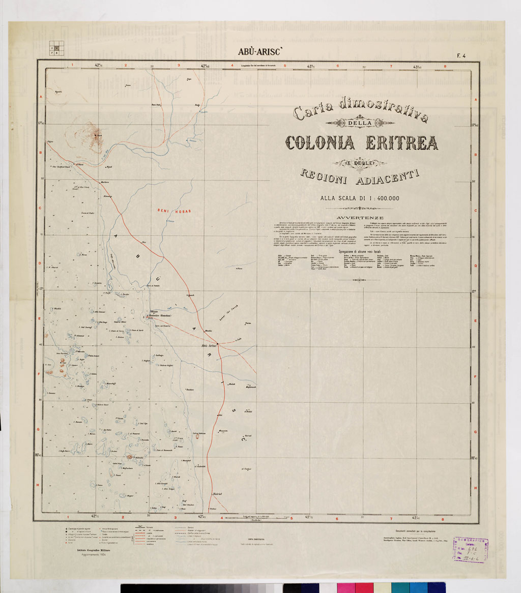 CARTA DIMOSTRATIVA DELLA COLONIA ERITREA E REGIONI ADIACENTI - Foglio 4 ABU' ARISC