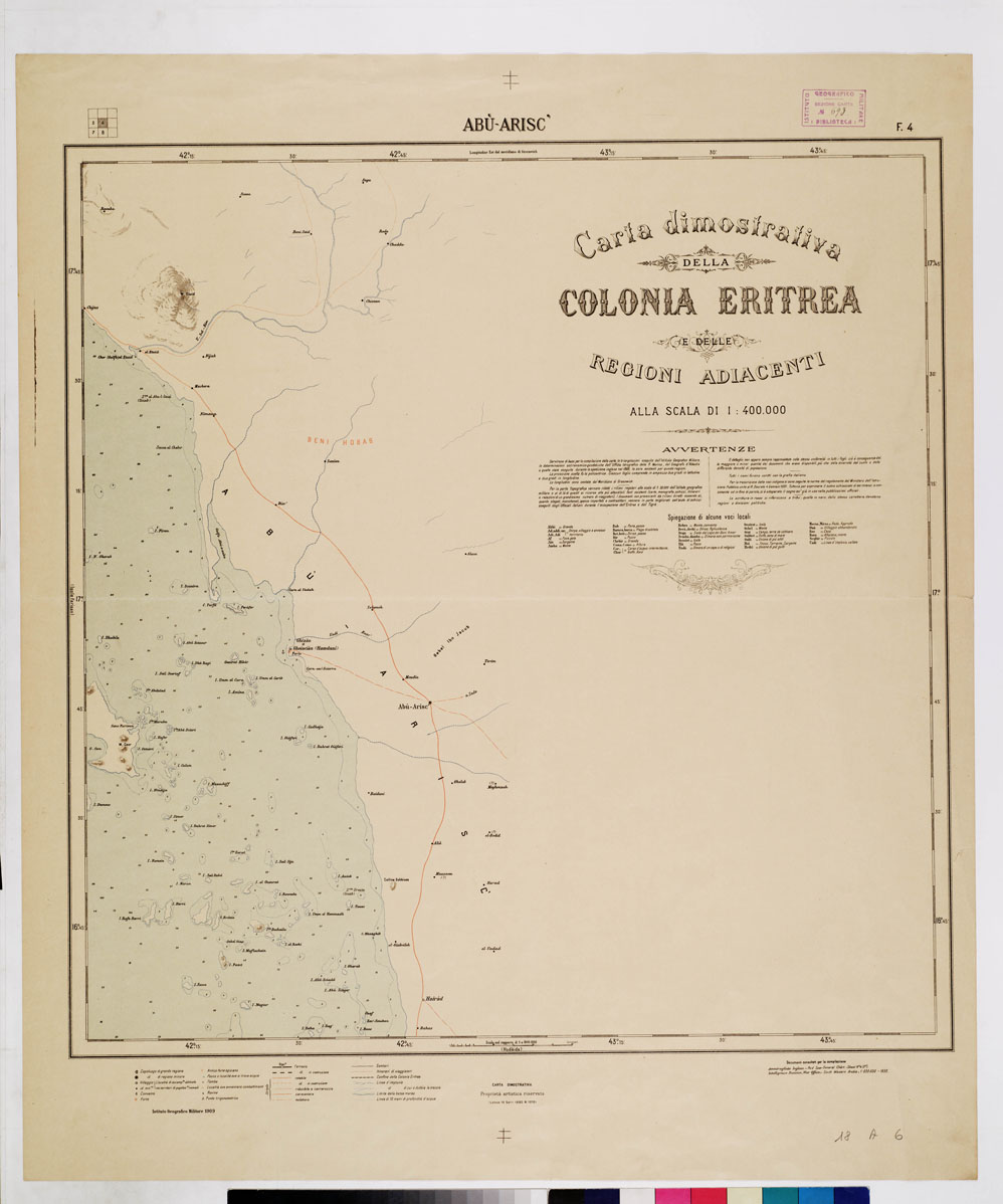 CARTA DIMOSTRATIVA DELLA COLONIA ERITREA E REGIONI ADIACENTI - Foglio 4 ABU' ARISC