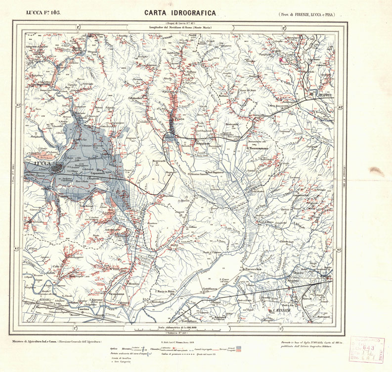 CARTA IDROGRAFICA DEL REGNO D'ITALIA - Foglio 105 - Lucca