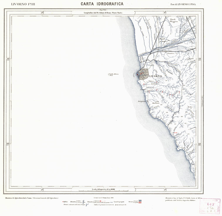 CARTA IDROGRAFICA DEL REGNO D'ITALIA - Foglio 111 - Livorno