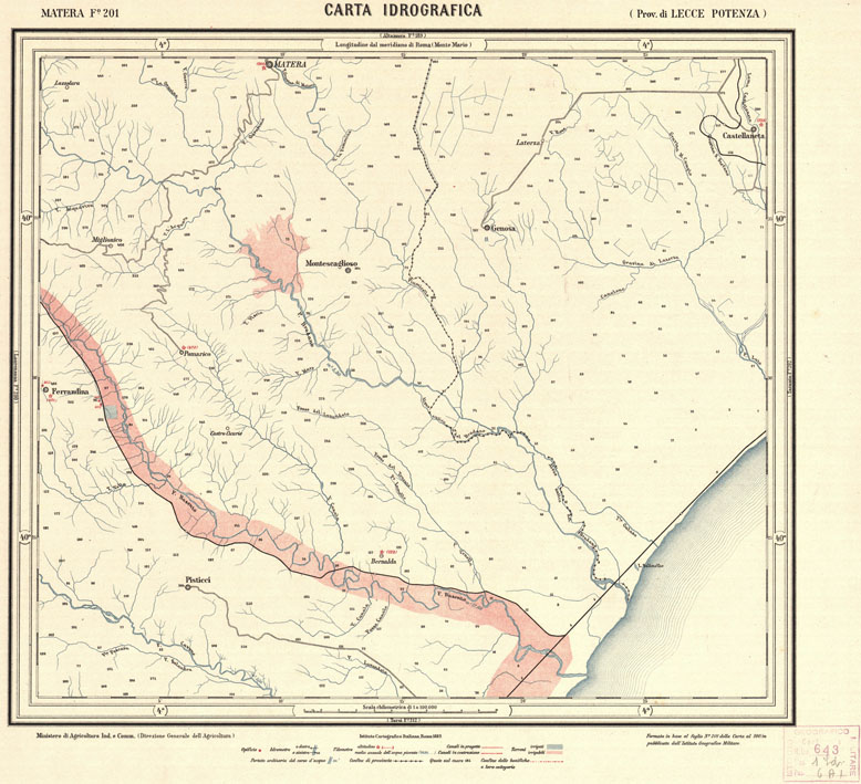 CARTA IDROGRAFICA DEL REGNO D'ITALIA - Foglio 201 - Matera