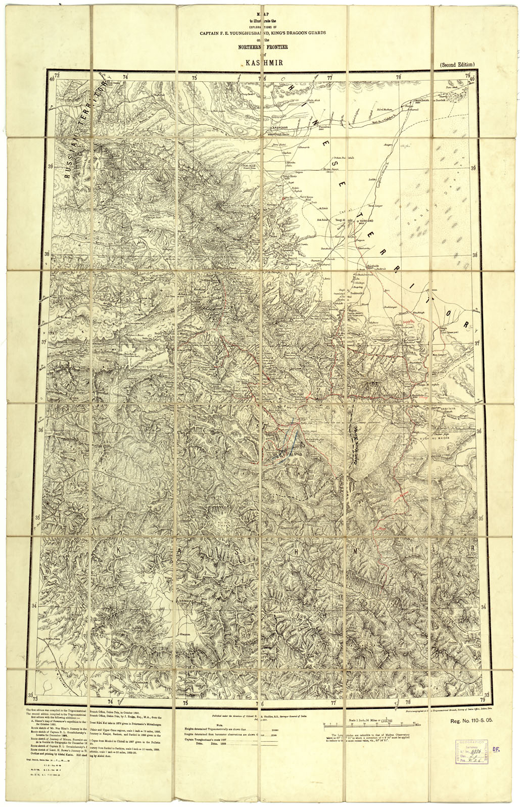 INDIA BRITANNICA - MAP TO ILLUSTRATE THE EXPLORATIONS OF CAPTAIN F. E. YOUNGHSBAND. (ORIG. SU TELA)
