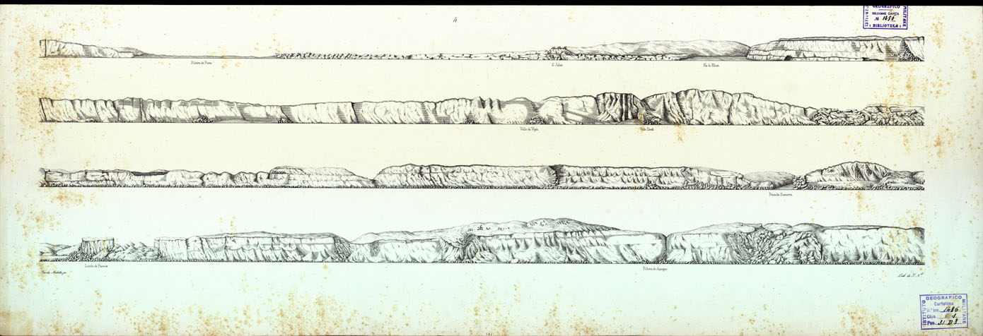 "Lisboa - Commissao Geologica do Portugal. E' una raccolta di 14 tavole illustranti prospetticamente la conformazione della costa marittima a nord di Foz do Tejo. E' stampata in nero da incisione su pietra, ed è priva di indicazione circa la data di pubblicazione. (catalogo ragionato parte 1 carte relative a territori esteri)"