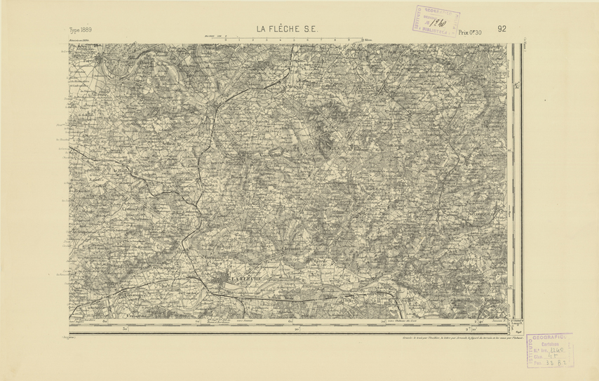 "Paris. Service Géographique de l'Armée, 1889. Ebbe origine dall'Edizione zincografica in quarti di foglio, stabilita dal 1879, per la carta detta de "L'Etat-Major". Infatti non rispondono più il sistema della riproduzione zincografica alle esigenze che la revisione dei fogli imponeva, per un inevitabile logoramento dei rami originali, fu proposta dapprima la correzione degli zinchi, ma questo, importando un lavoro lungo e gravoso, si adottò il procedimento galvanico. I rami galvanici ottenuti e corretti secondo questo sistema presero il nome di "édition type 1889". Allo scopo di facilitare l'incisione fu adoperata la suddivisione in quarti di foglio come per l'edizione zincografica. La revisione dei fogli di questo tipo non fu iniziata che nel 1893. Dal catalogo del S.G.A. risultano mancanti a questa edizione i dipartimenti della "Moselle", del "Bas-Rhin" e del "Haut-Rhin" per i quali non esiste che una edizione in fogli interi aggiornata nel 1901."