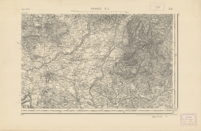 "Paris. Service Géographique de l'Armée, 1889. Ebbe origine dall'Edizione zincografica in quarti di foglio, stabilita dal 1879, per la carta detta de "L'Etat-Major". Infatti non rispondono più il sistema della riproduzione zincografica alle esigenze che la revisione dei fogli imponeva, per un inevitabile logoramento dei rami originali, fu proposta dapprima la correzione degli zinchi, ma questo, importando un lavoro lungo e gravoso, si adottò il procedimento galvanico. I rami galvanici ottenuti e corretti secondo questo sistema presero il nome di "édition type 1889". Allo scopo di facilitare l'incisione fu adoperata la suddivisione in quarti di foglio come per l'edizione zincografica. La revisione dei fogli di questo tipo non fu iniziata che nel 1893. Dal catalogo del S.G.A. risultano mancanti a questa edizione i dipartimenti della "Moselle", del "Bas-Rhin" e del "Haut-Rhin" per i quali non esiste che una edizione in fogli interi aggiornata nel 1901."
