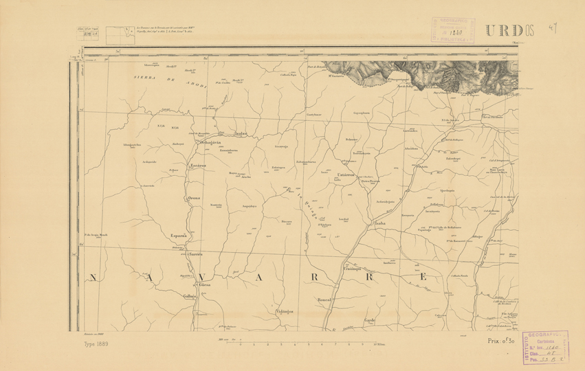 "Paris. Service Géographique de l'Armée, 1889. Ebbe origine dall'Edizione zincografica in quarti di foglio, stabilita dal 1879, per la carta detta de "L'Etat-Major". Infatti non rispondono più il sistema della riproduzione zincografica alle esigenze che la revisione dei fogli imponeva, per un inevitabile logoramento dei rami originali, fu proposta dapprima la correzione degli zinchi, ma questo, importando un lavoro lungo e gravoso, si adottò il procedimento galvanico. I rami galvanici ottenuti e corretti secondo questo sistema presero il nome di "édition type 1889". Allo scopo di facilitare l'incisione fu adoperata la suddivisione in quarti di foglio come per l'edizione zincografica. La revisione dei fogli di questo tipo non fu iniziata che nel 1893. Dal catalogo del S.G.A. risultano mancanti a questa edizione i dipartimenti della "Moselle", del "Bas-Rhin" e del "Haut-Rhin" per i quali non esiste che una edizione in fogli interi aggiornata nel 1901."