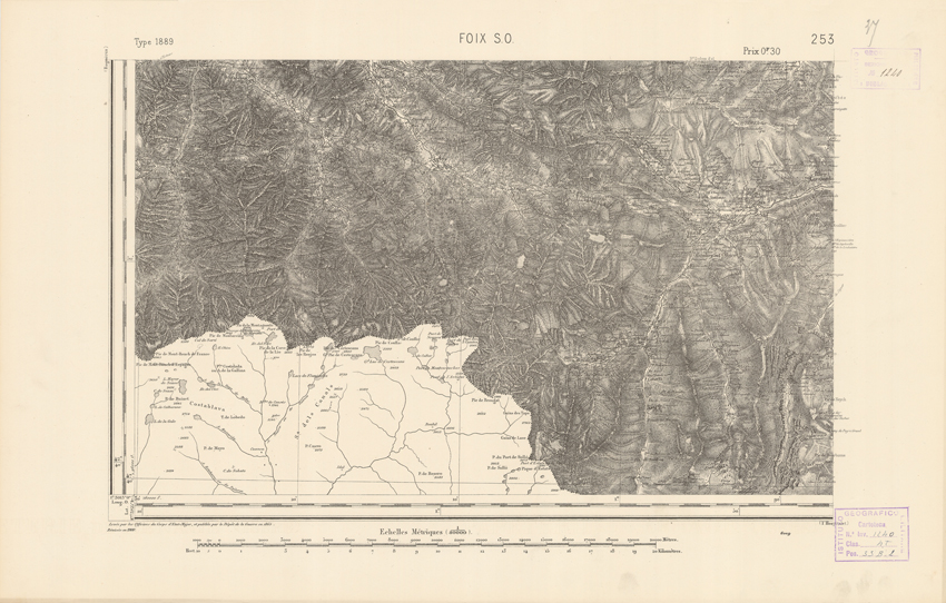 "Paris. Service Géographique de l'Armée, 1889. Ebbe origine dall'Edizione zincografica in quarti di foglio, stabilita dal 1879, per la carta detta de "L'Etat-Major". Infatti non rispondono più il sistema della riproduzione zincografica alle esigenze che la revisione dei fogli imponeva, per un inevitabile logoramento dei rami originali, fu proposta dapprima la correzione degli zinchi, ma questo, importando un lavoro lungo e gravoso, si adottò il procedimento galvanico. I rami galvanici ottenuti e corretti secondo questo sistema presero il nome di "édition type 1889". Allo scopo di facilitare l'incisione fu adoperata la suddivisione in quarti di foglio come per l'edizione zincografica. La revisione dei fogli di questo tipo non fu iniziata che nel 1893. Dal catalogo del S.G.A. risultano mancanti a questa edizione i dipartimenti della "Moselle", del "Bas-Rhin" e del "Haut-Rhin" per i quali non esiste che una edizione in fogli interi aggiornata nel 1901."