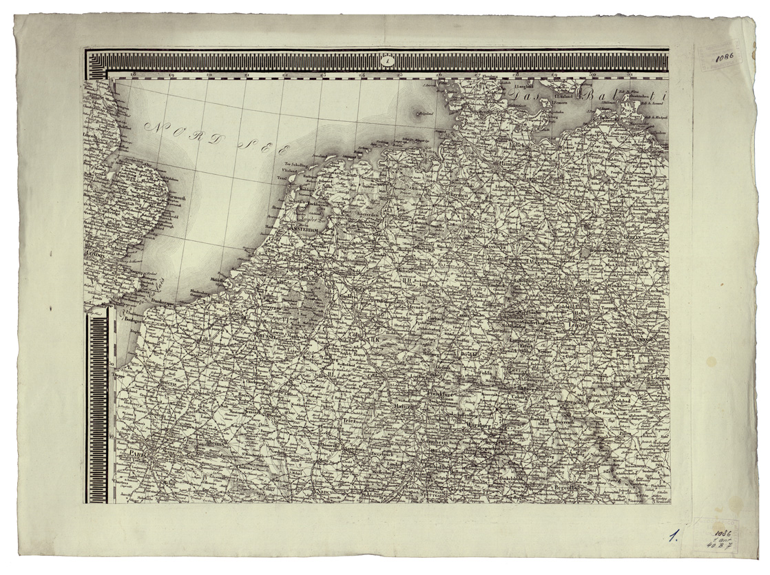 "EUROPA - CARTE GENERALI Autore Max de Traux & Fried Fogli 6 incisione su rame rappresentazione orografica a tratteggio. Inventario SBN 7-1086 "