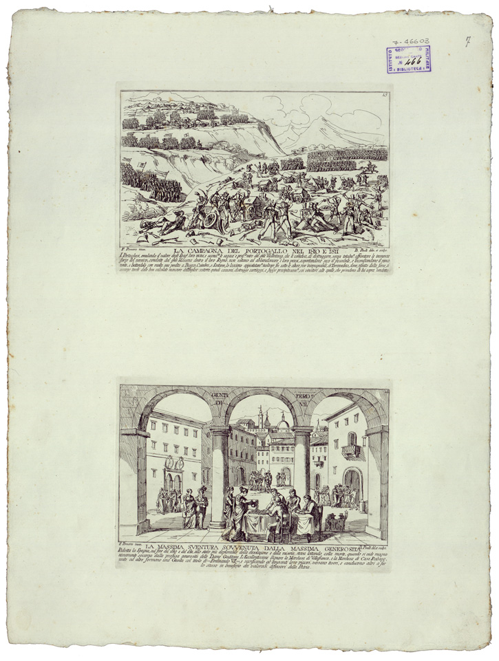 "Autore Tommaso Lopez & Francesco Pomares Fogli 17 stampa in nero incisa su rame. Inventario SBN 7-46603 "