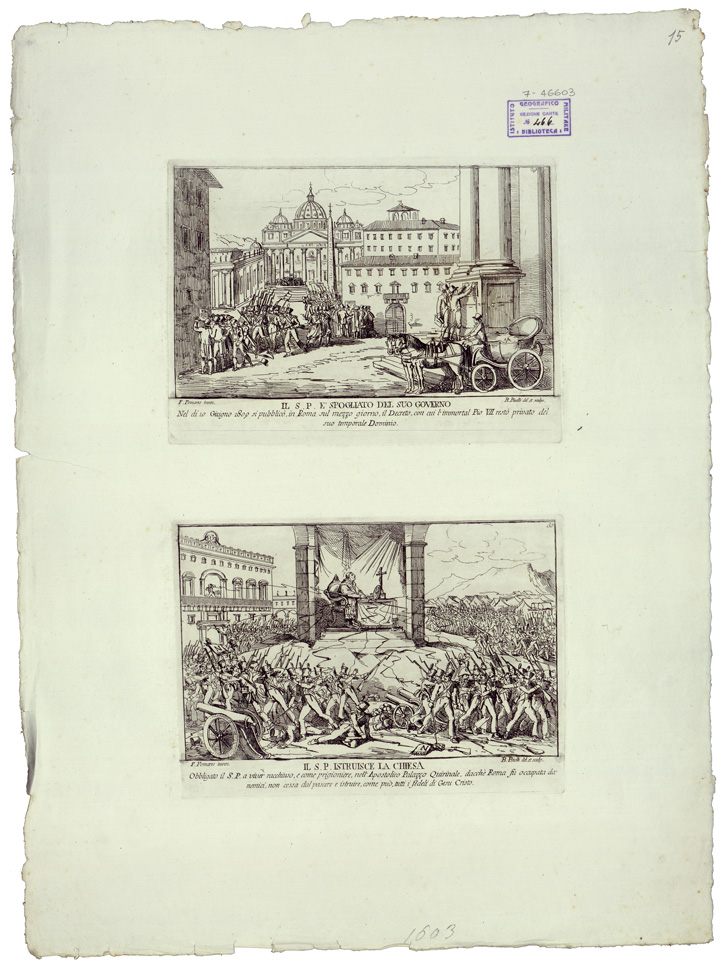 "Autore Tommaso Lopez & Francesco Pomares Fogli 17 stampa in nero incisa su rame. Inventario SBN 7-46603 "