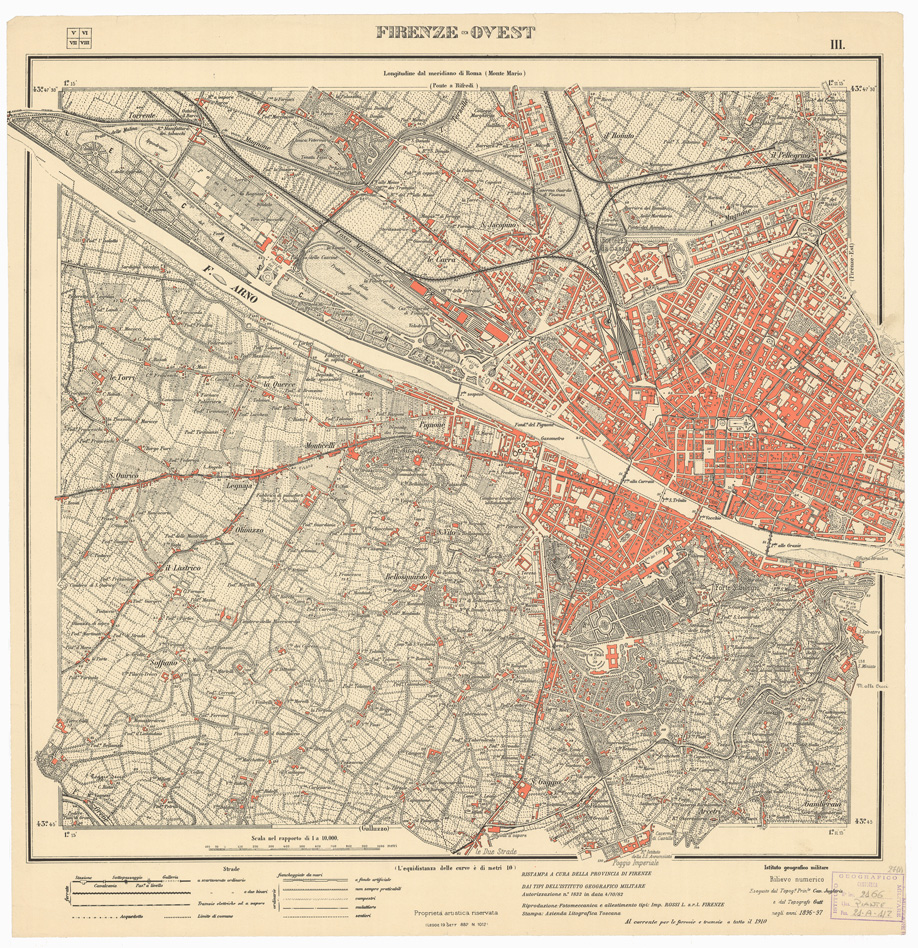 CARTA TOPOGRAFICA FIRENZE E DINTORNI - FOGLIO III FIRENZE OVEST