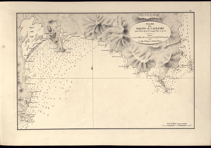 PORTOLANO DELLA SARDEGNA - CARTA IDROGRAFICA DELLA SARDEGNA LEVATA DAL CAVALIERE GIUSEPPE ALBINI CAPITANO DI VASCELLO NELLA MARINA DI S.M. SARDA - PIANO del GOLFO di CAGLIARI TAVOLA III.