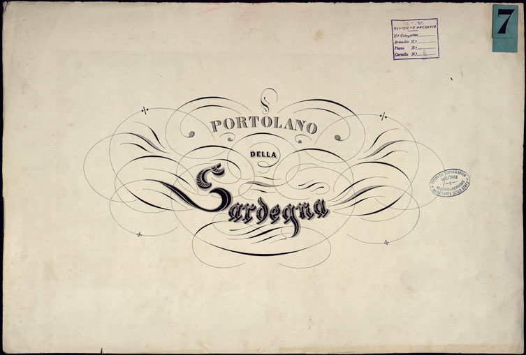 PORTOLANO DELLA SARDEGNA - CARTA IDROGRAFICA DELLA SARDEGNA LEVATA DAL CAVALIERE GIUSEPPE ALBINI CAPITANO DI VASCELLO NELLA MARINA DI S.M. SARDA - TITOLO.