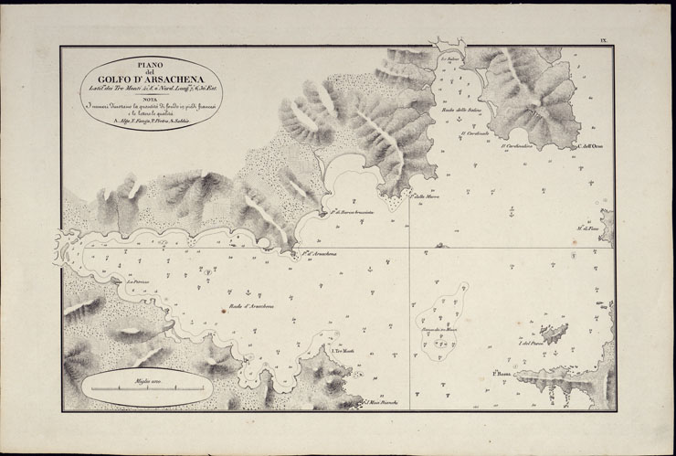 PORTOLANO DELLA SARDEGNA - CARTA IDROGRAFICA DELLA SARDEGNA LEVATA DAL CAVALIERE GIUSEPPE ALBINI CAPITANO DI VASCELLO NELLA MARINA DI S.M. SARDA - PIANO DI PORTO CERVO - TAVOLA VIII.