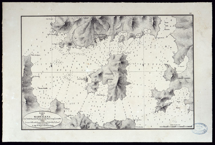 PORTOLANO DELLA SARDEGNA - CARTA IDROGRAFICA DELLA SARDEGNA LEVATA DAL CAVALIERE GIUSEPPE ALBINI CAPITANO DI VASCELLO NELLA MARINA DI S.M. SARDA - RADA DELLA MADDALENA TAVOLA XV.