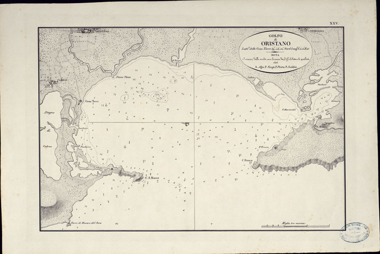 PORTOLANO DELLA SARDEGNA - CARTA IDROGRAFICA DELLA SARDEGNA LEVATA DAL CAVALIERE GIUSEPPE ALBINI CAPITANO DI VASCELLO NELLA MARINA DI S.M. SARDA - GOLFO DI ORISTANO TAVOLA XXV.