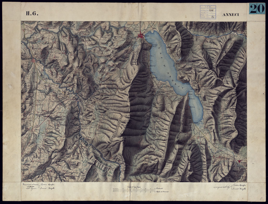 CARTA TOPOGRAFICA DEGLI STATI DI TERRA FERMA DI S.S.R.M. CARLO ALBERTO RE DI SARDEGNA FATTA DAL CORPO DELLO STATO MAGGIORE COMANDATO DAL TEN.TE GEN.LE B.NE DI MONTHOUX ALLA SCALA DI 1 50.000 1831 - FOGLIO H.6 ANNECI.