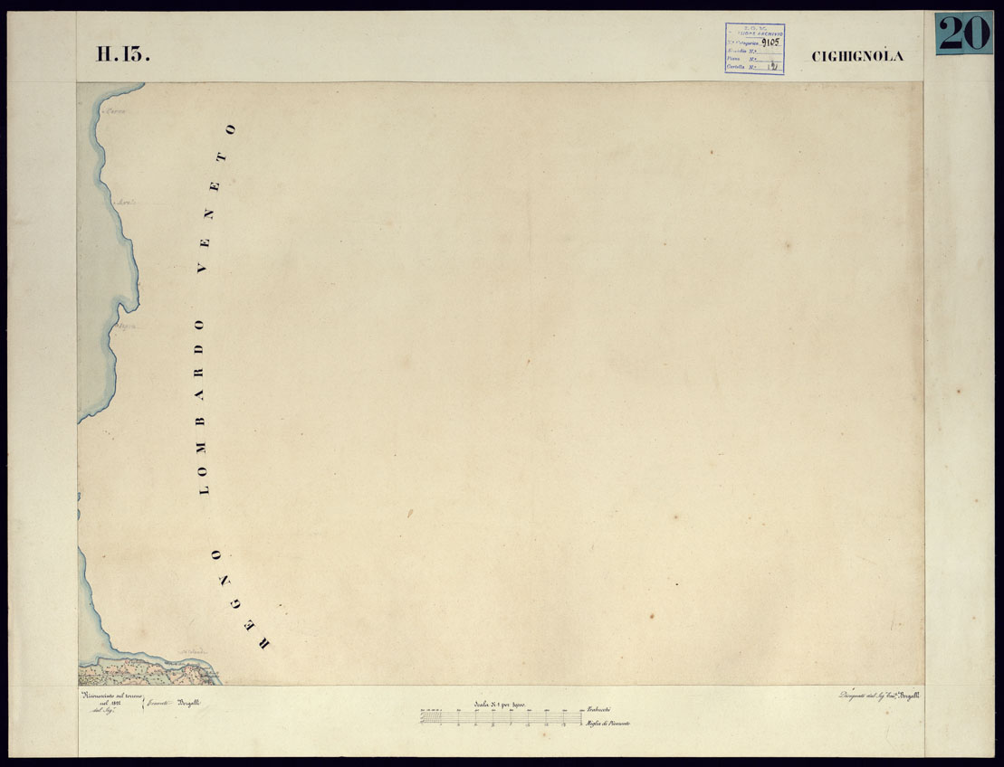 CARTA TOPOGRAFICA DEGLI STATI DI TERRA FERMA DI S.S.R.M. CARLO ALBERTO RE DI SARDEGNA FATTA DAL CORPO DELLO STATO MAGGIORE COMANDATO DAL TEN.TE GEN.LE B.NE DI MONTHOUX ALLA SCALA DI 1 50.000 1831 - FOGLIO H.13 CIGHIGNOLA.