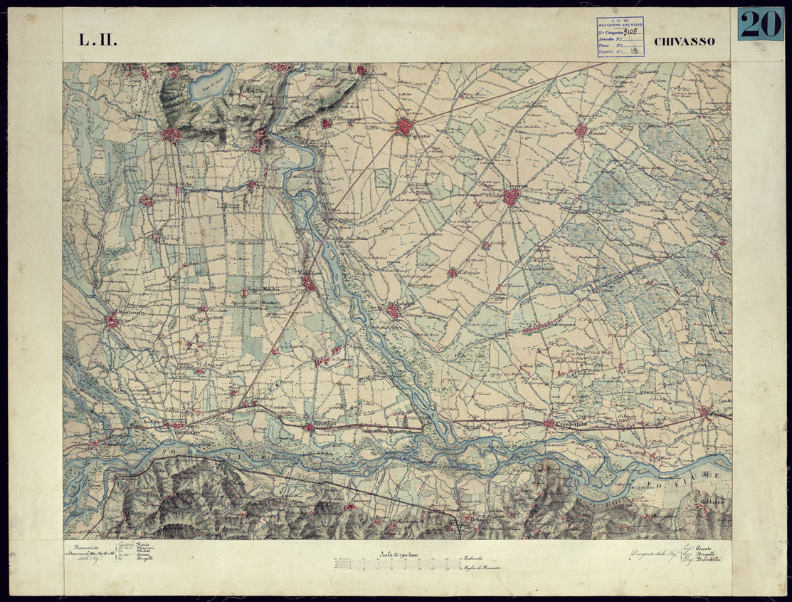CARTA TOPOGRAFICA DEGLI STATI DI TERRA FERMA DI S.S.R.M. CARLO ALBERTO RE DI SARDEGNA FATTA DAL CORPO DELLO STATO MAGGIORE COMANDATO DAL TEN.TE GEN.LE B.NE DI MONTHOUX ALLA SCALA DI 1 50.000 1831 - FOGLIO L.11 CHIVASSO.