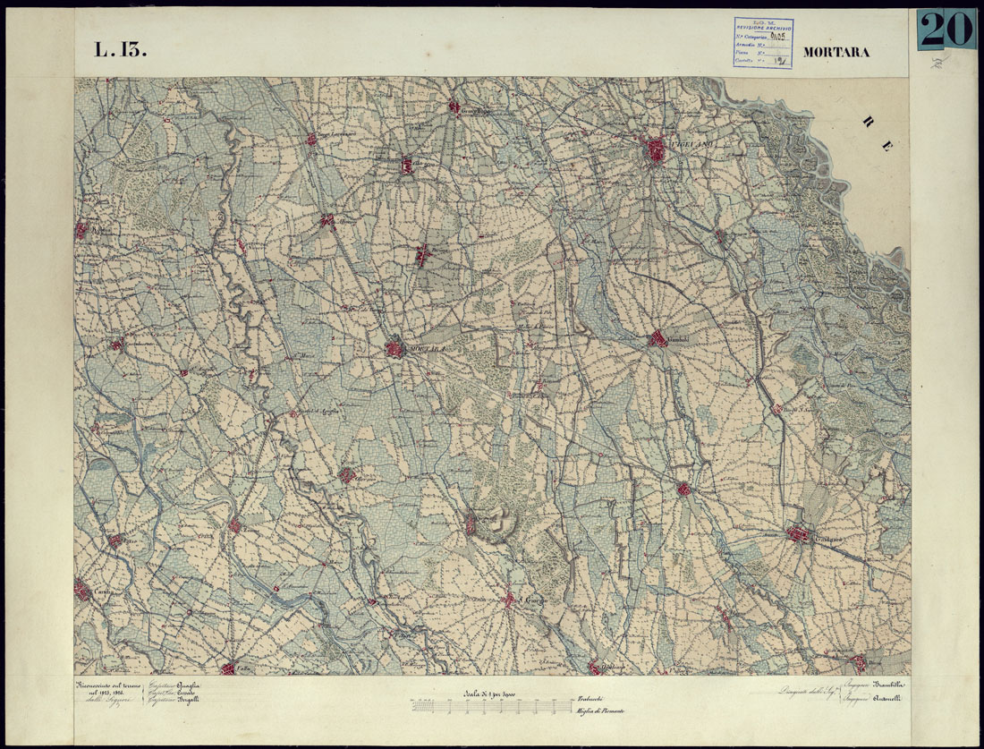 CARTA TOPOGRAFICA DEGLI STATI DI TERRA FERMA DI S.S.R.M. CARLO ALBERTO RE DI SARDEGNA FATTA DAL CORPO DELLO STATO MAGGIORE COMANDATO DAL TEN.TE GEN.LE B.NE DI MONTHOUX ALLA SCALA DI 1 50.000 1831 - FOGLIO L.13 MORTARA.