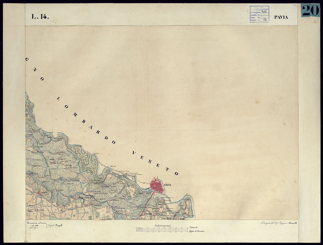CARTA TOPOGRAFICA DEGLI STATI DI TERRA FERMA DI S.S.R.M. CARLO ALBERTO RE DI SARDEGNA FATTA DAL CORPO DELLO STATO MAGGIORE COMANDATO DAL TEN.TE GEN.LE B.NE DI MONTHOUX ALLA SCALA DI 1 50.000 1831 - FOGLIO L.14 PAVIA.