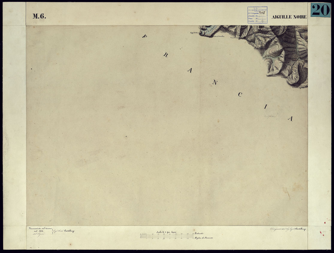 CARTA TOPOGRAFICA DEGLI STATI DI TERRA FERMA DI S.S.R.M. CARLO ALBERTO RE DI SARDEGNA FATTA DAL CORPO DELLO STATO MAGGIORE COMANDATO DAL TEN.TE GEN.LE B.NE DI MONTHOUX ALLA SCALA DI 1 50.000 1831 - FOGLIO M.6 AIGUILLE NOIRE.